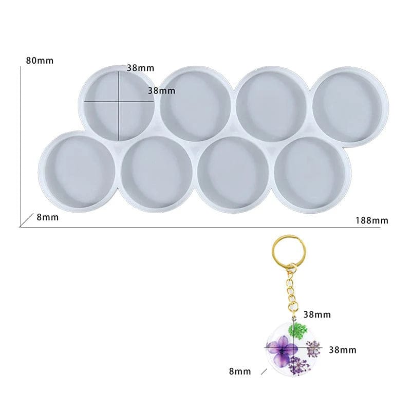 Create multiple keychains in one pour with our 8-in-1 Round Keychain Silicone Resin Mold, designed for fast, efficient, and professional resin crafting. This mold features 8 perfectly shaped round cavities, ideal for making custom keychains, name tags, bag charms, pendants, and small business products.